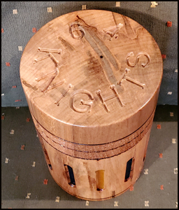 In the first drawing for a prize, Vicki Loeffler Roark won the lidded container